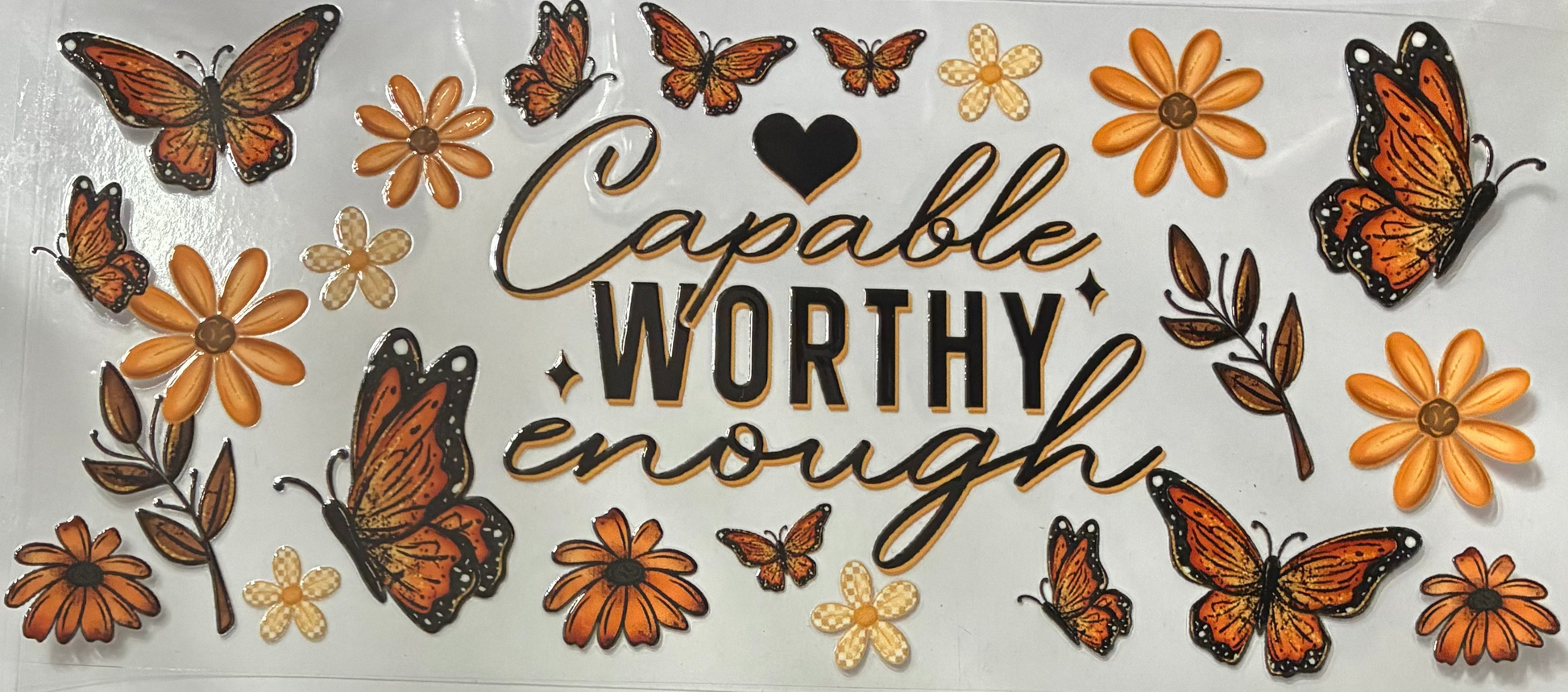 16oz saying cup wrap with butterflies and flowers - capable worthy enough.